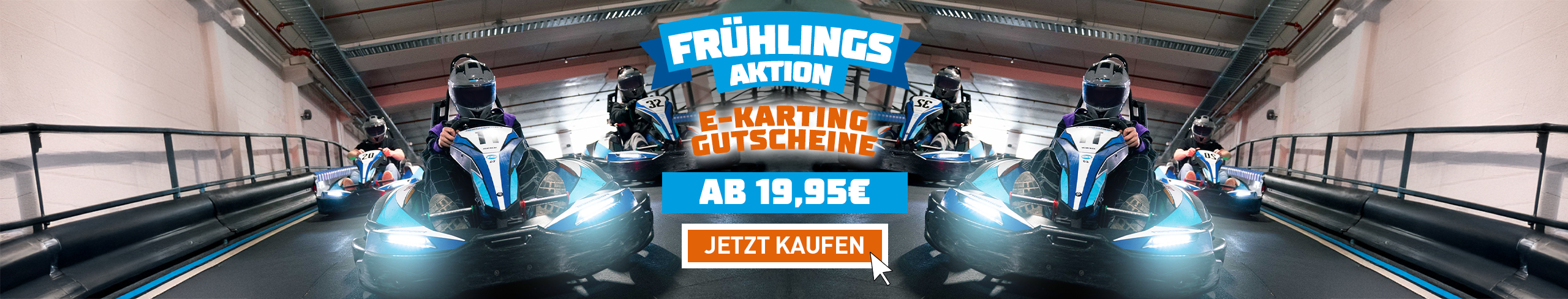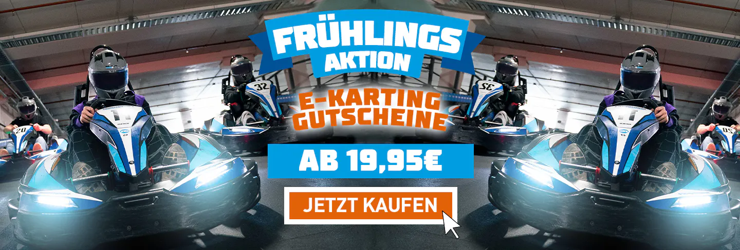 Mit dem Frühlings-Gutschein 2026 hast du für kurze Zeit die Möglichkeit, unsere beliebtesten Rennformate zum Vorteilspreis ab 19,95€ zu erleben – flexibel, direkt buchbar und nur über diese Seite verfügbar.